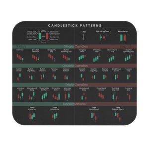 Never forget a candlestick pattern again with this handy candlestick mouse pad. It not only looks great on your desk, but it's also a great tool to have when analyzing charts and you can't quite remember a particular pattern.