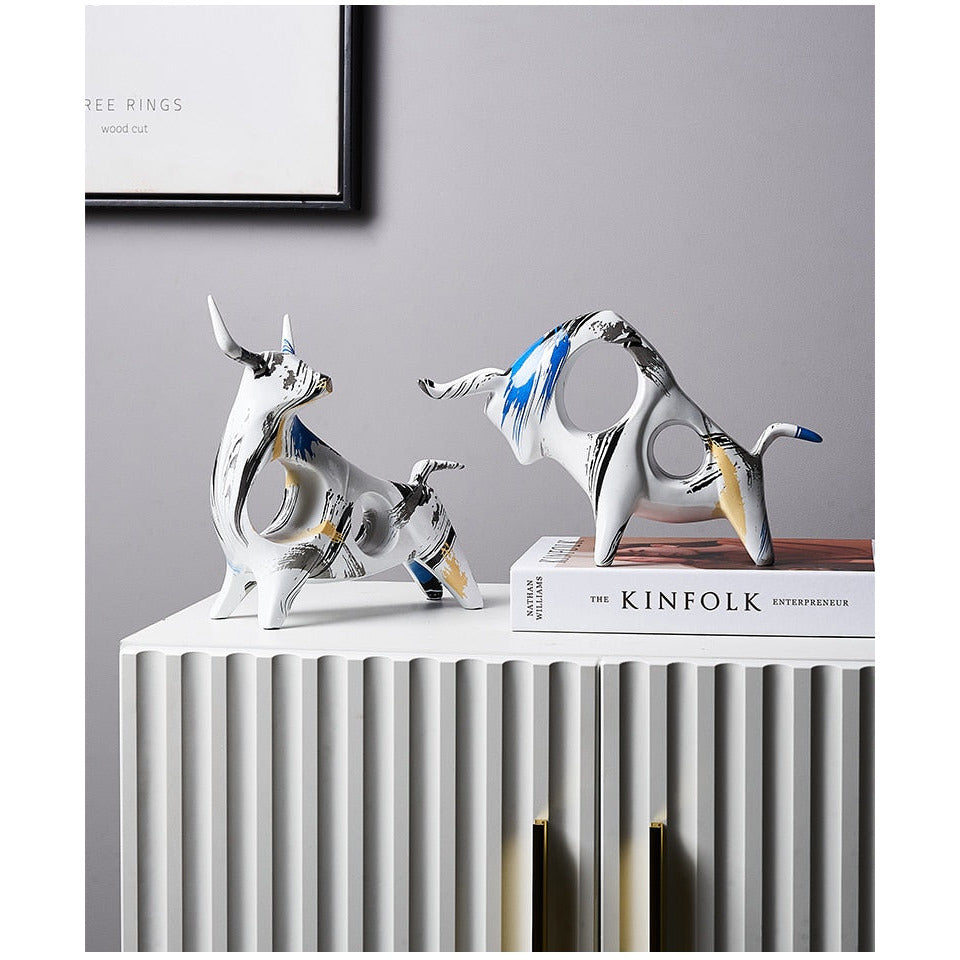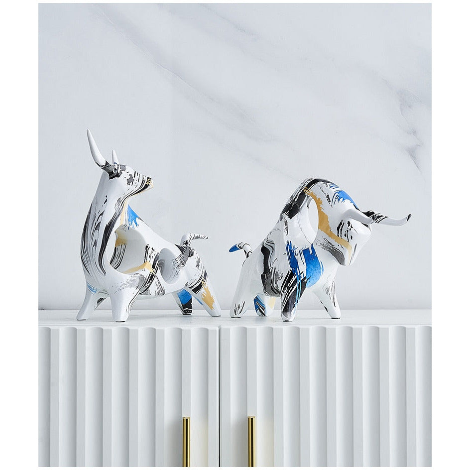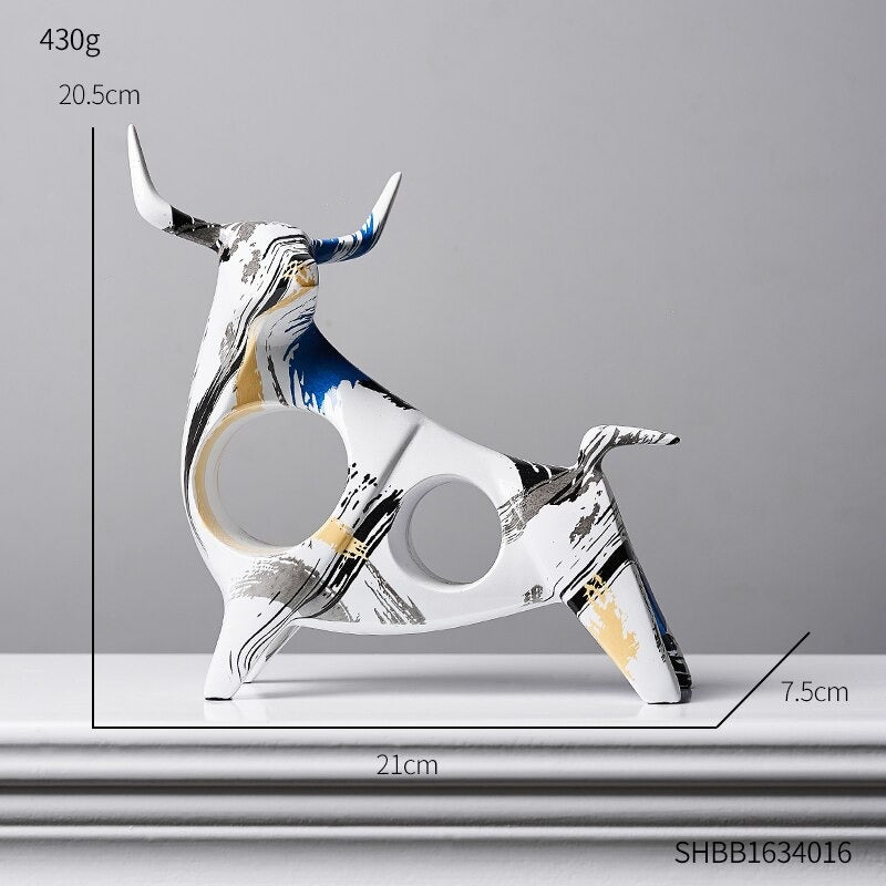 Add a unique touch to your workspace with this modern and stylish bull sculpture. Made out of high-quality resin, this badass-looking bull is sure to make a statement. With its sleek design and dazzling colors, it's a unique twist on the traditional Wall Street bull.